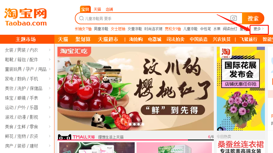 3. 淘宝上升词选款:选择最近搜索上升词,淘宝首页搜索框——更多——选择类目——选择搜索上升榜